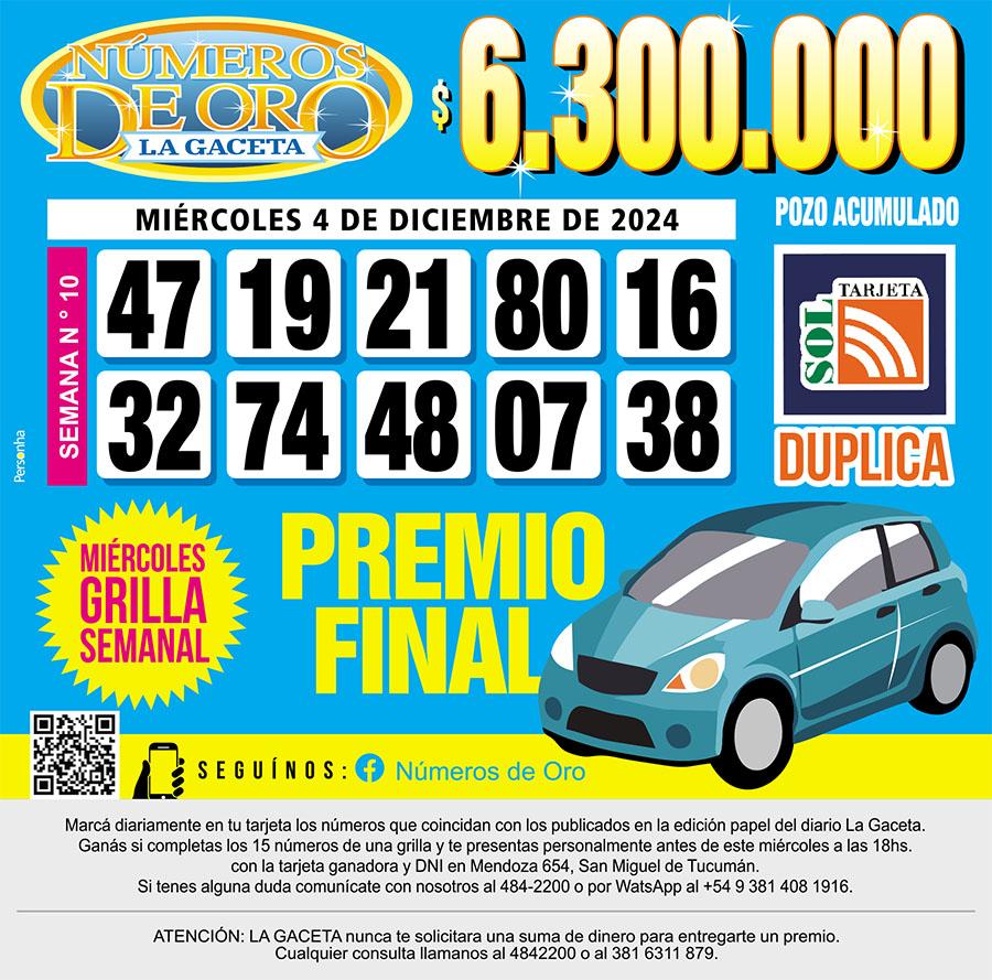 Los Números de Oro de LA GACETA del 4 de diciembre de 2024 Esta nota es de acceso libre. Fuente…